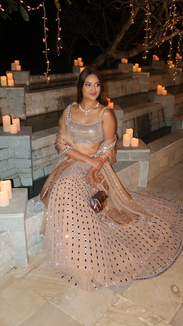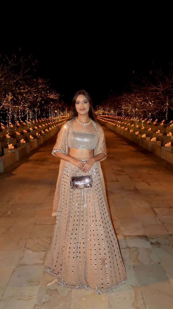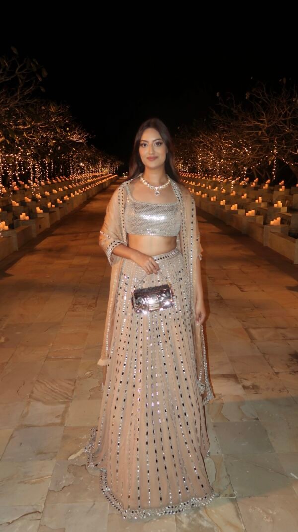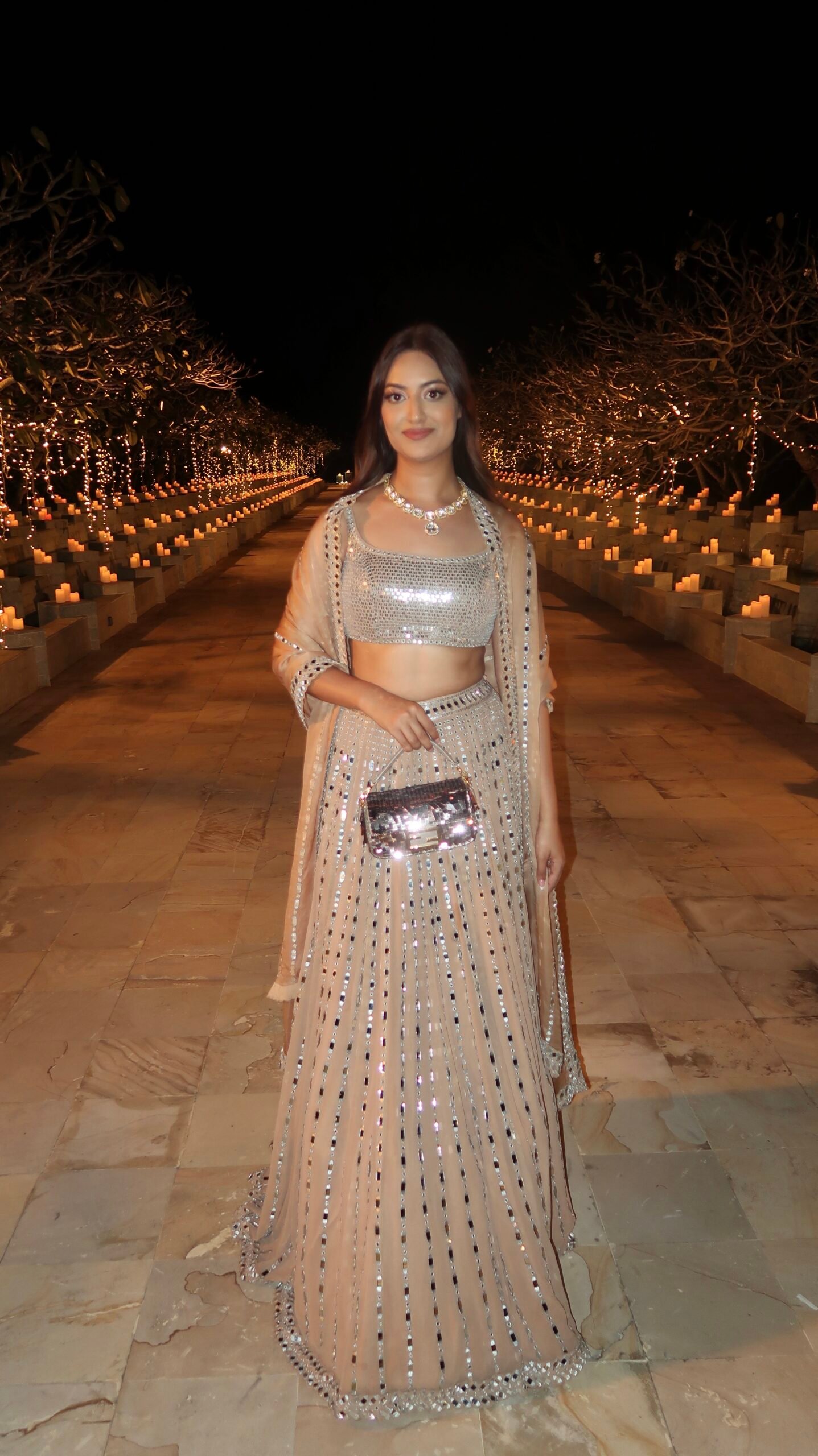 NATASHA SHAH In Chahak Beige Linear Lehenga With Metallic Blouse