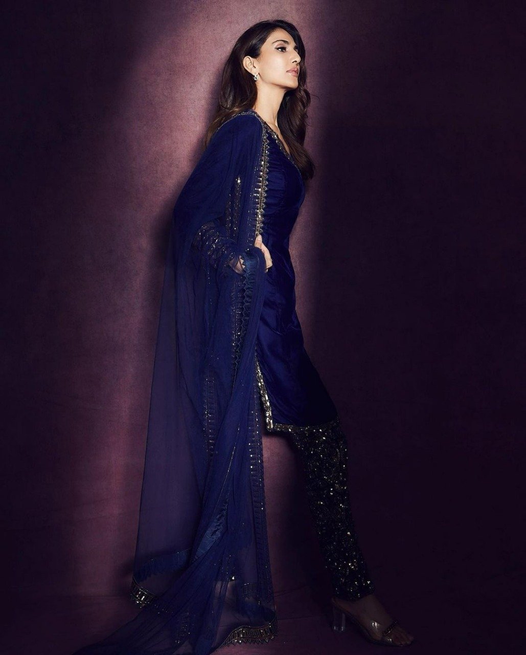 VAANI KAPOOR IN Navy Blue Velvet Kurta Set