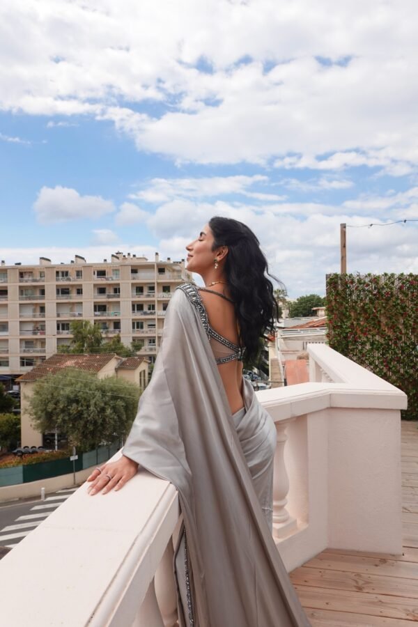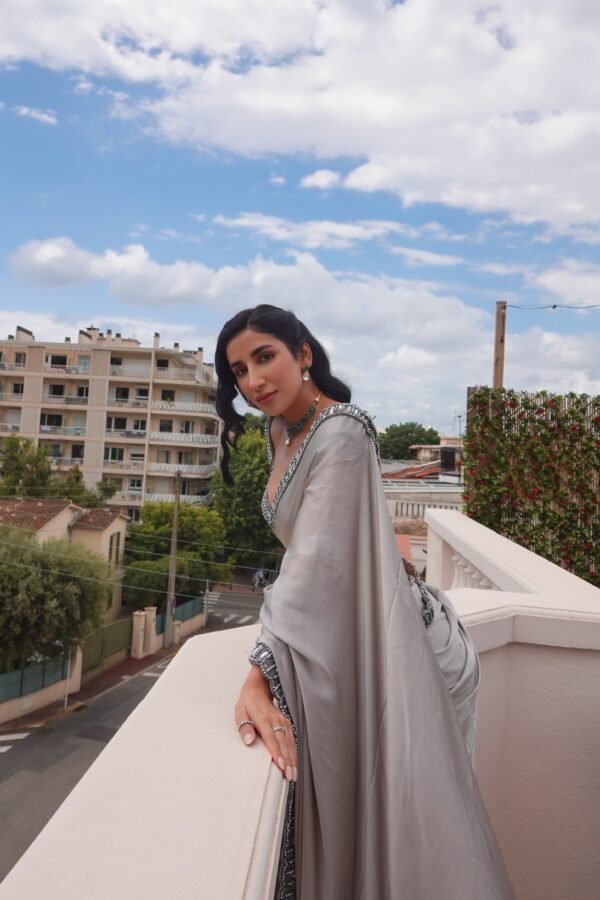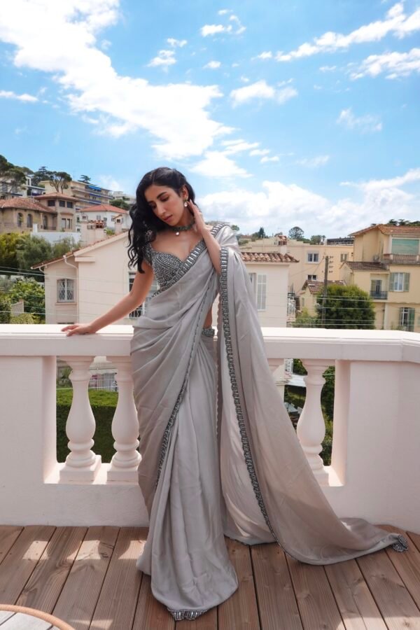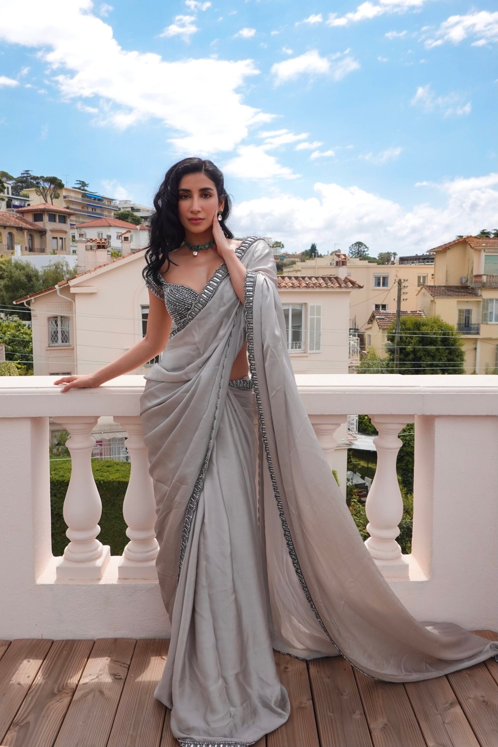PARUL GULATI At CANNES In Maya Crystal Grey Saree Set
